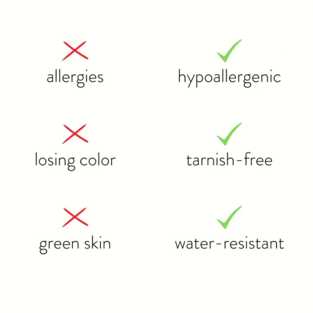 Hergestellt aus rostfreiem Stahl, müssen Sie sich nie wieder um verblassenden oder anlaufenden Schmuck sorgen.